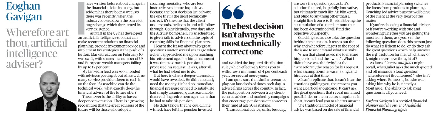 Eoghan Gavigan is a certified financial planner and the owner of Highfield Financial Planning hfp.ie